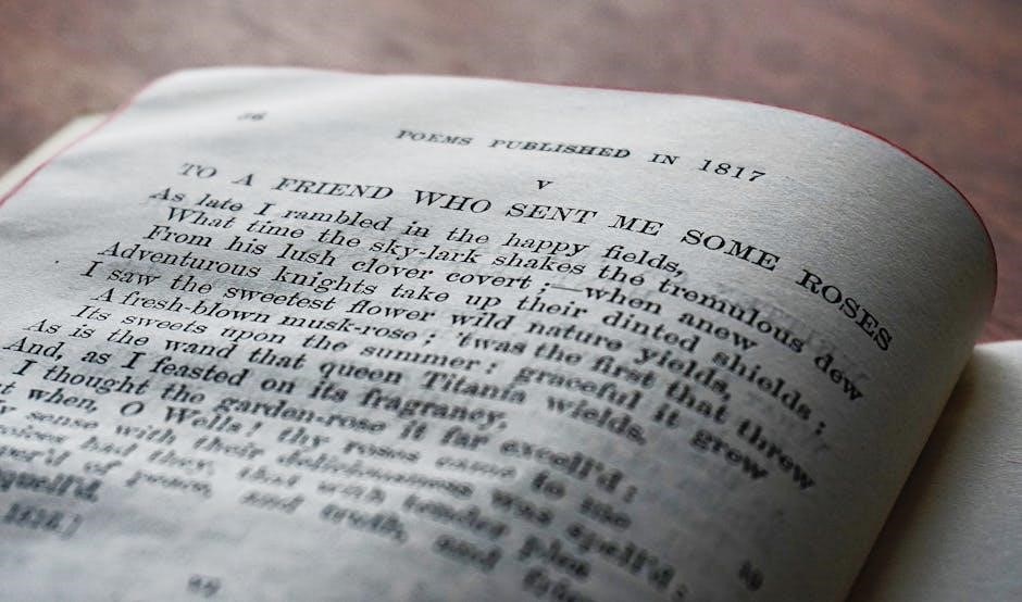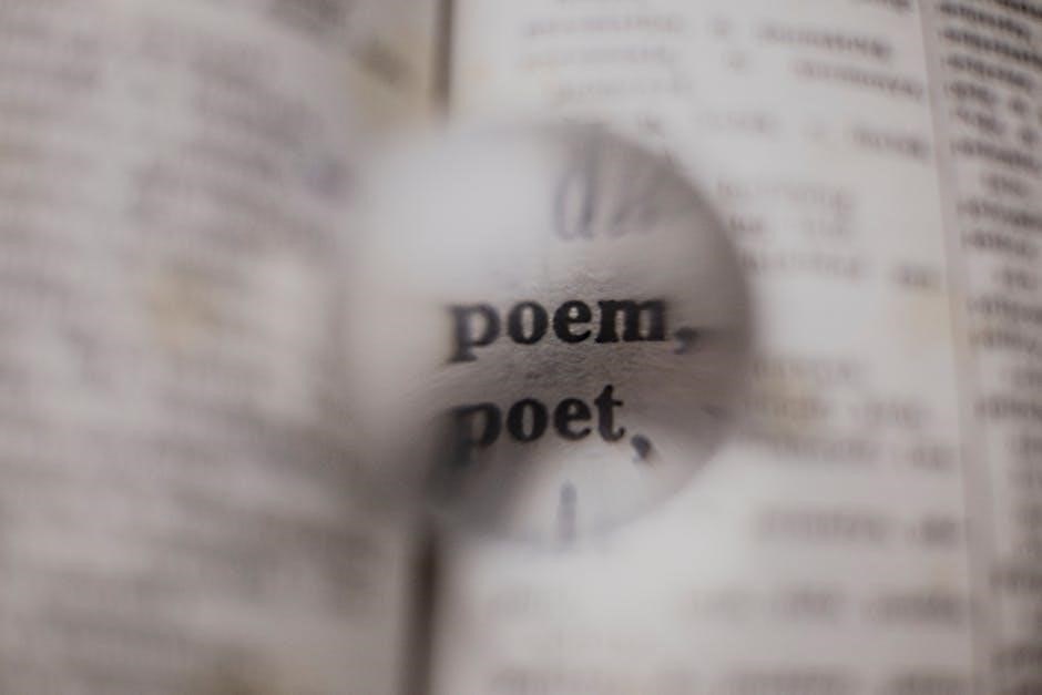 Analyzing a poetry PDF involves dissecting form, language, and sound devices to unlock deeper meaning. Consider structure, imagery, and rhythm for a comprehensive understanding.